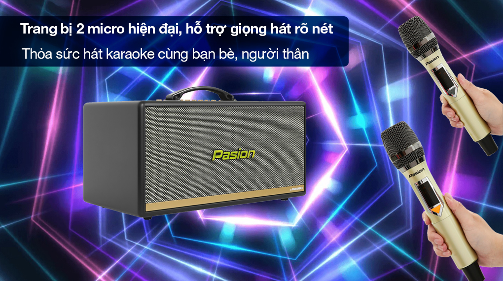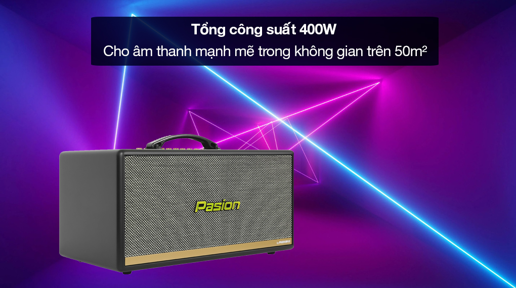 - Sở hữu công suất đến 400W, mẫu loa karaoke xách tay PASION này cho chất lượng âm thanh sống động, phù hợp trong không gian lớn trên 50m².