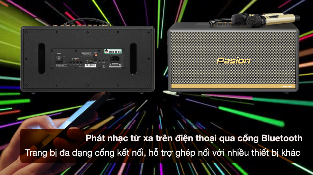 + Tính năng kết nối không dây 2 loa True Wireless Stereo (TWS): Giúp kết nối không dây 2 loa karaoke PASION 2c với nhau, từ đó tăng công suất hoạt động đầu ra và cho độ bao phủ âm thanh tốt hơn, góp phần tạo thêm không khí sôi động cho bữa tiệc.