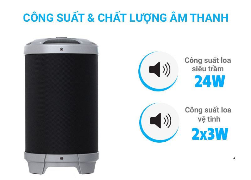 Thiết kế sang trọng. âm thanh tốt trong tầm giá có hai lỗ cắm micro. Mang đi sự kiện rất ok. Giá như được tặng kèm mic thì tuyệt vời. Mình rất hài lòng Sản Phẩm này