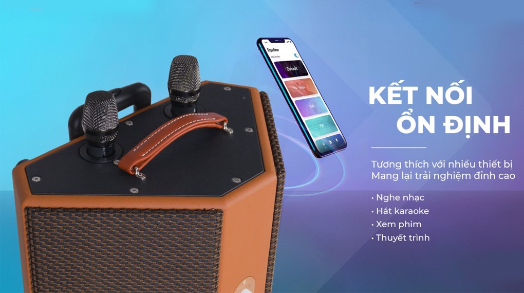 Micro không dây: Thân micro kích thước vừa phải, được làm bằng hợp kim tinh chế nhẹ cho phép bạn cầm lâu hạn chế mỏi tay. Ngoài ra, phần củ micro bên trong có khả năng tái tạo và hỗ trợ luyến láy ngân giọng, giúp bạn tự tin khoe giọng hát.