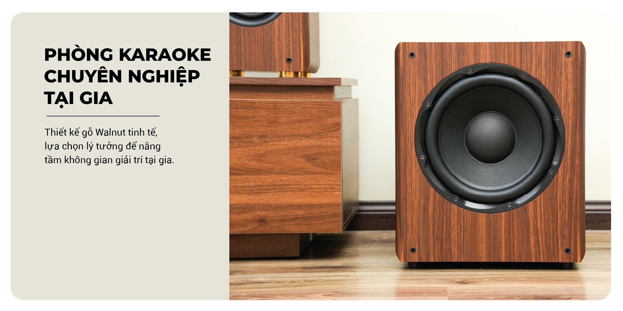 Thùng loa được chế tác từ gỗ cao cấp, không chỉ đảm bảo độ bền vượt trội mà còn tối ưu hiệu quả âm học, giảm thiểu rung chấn không mong muốn. Với kích thước ngang 40 cm, sâu 40 cm và cao 46 cm, sản phẩm này thể hiện sự vững chãi, chắc chắn, sẵn sàng trở thành điểm nhấn âm thanh đầy uy lực trong phòng khách của bạn.