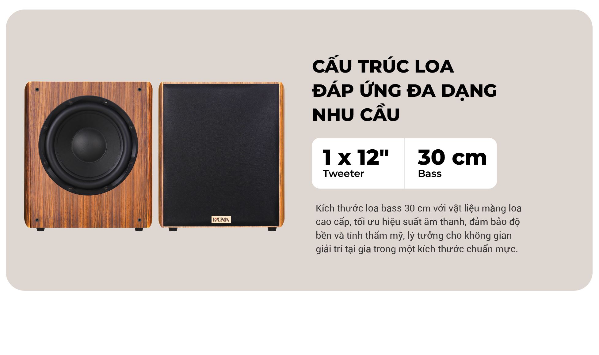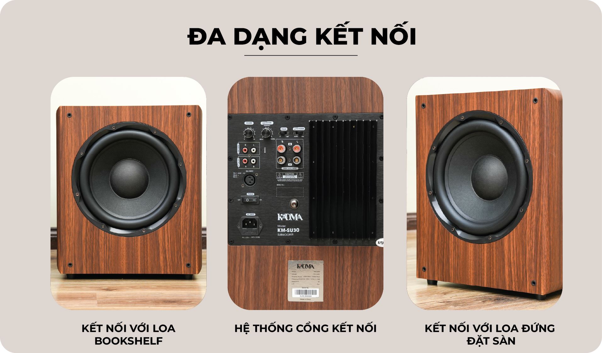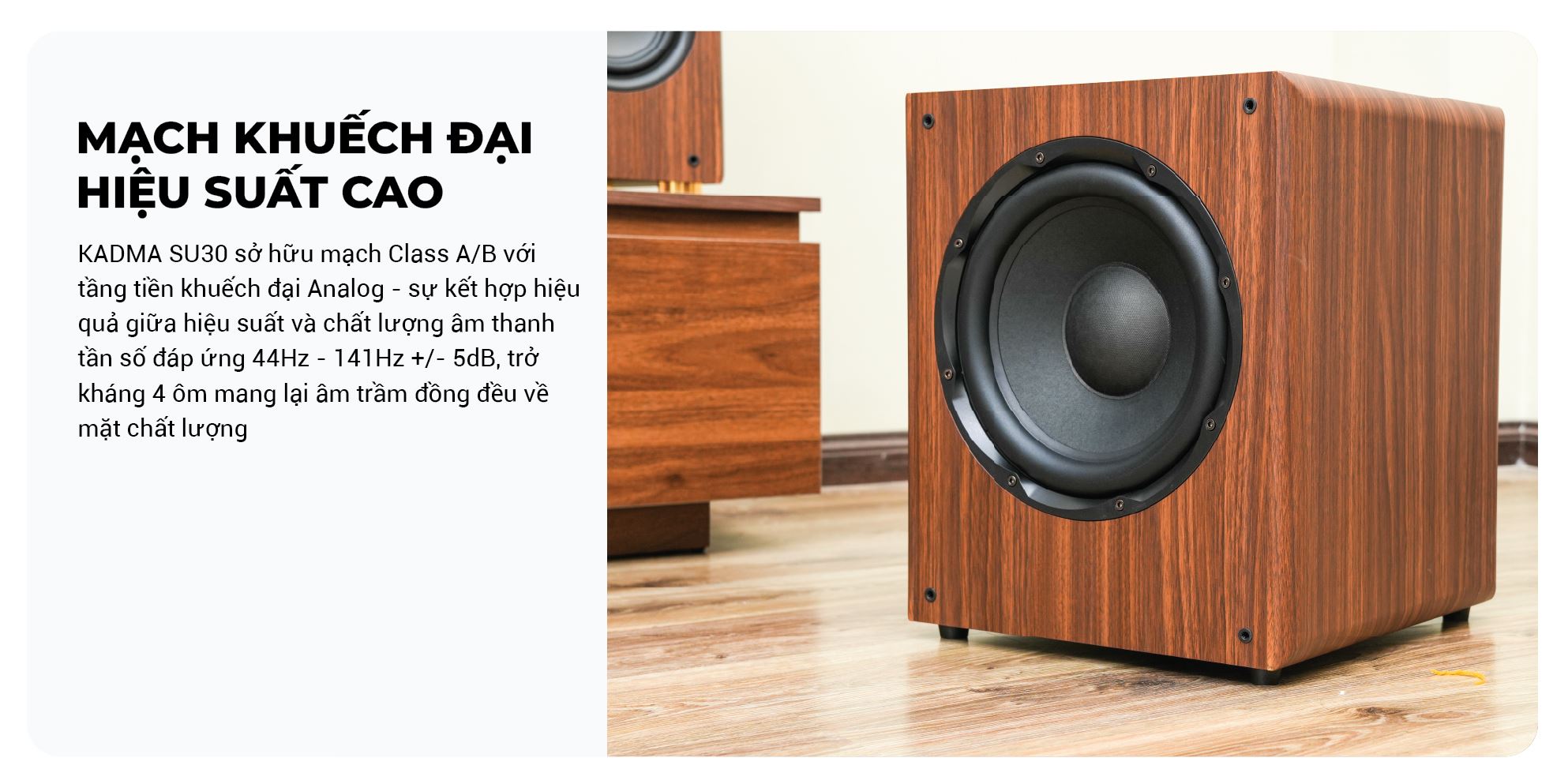 Trái tim của KM-SU30 là công nghệ âm thanh độc quyền KADMA, được phát triển để mang lại chất âm trầm vượt trội. Kết hợp với mạch class A/B, loa cho ra âm thanh mạnh mẽ nhưng vẫn giữ được độ chi tiết và sắc nét, không bị méo tiếng dù ở âm lượng cao.