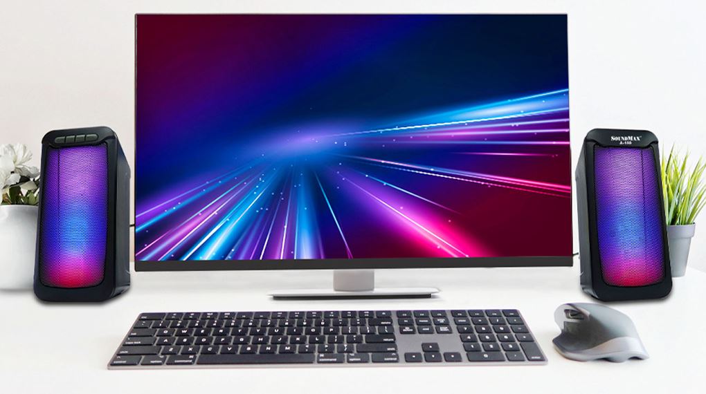Mẫu loa vi tính này sở hữu thiết kế tối giản nhưng toát lên vẻ hiện đại đầy lôi cuốn. Hai khối loa hình hộp chữ nhật đứng được vát cong mềm mại ở các cạnh, mang lại cảm giác chắc chắn mà vẫn rất tinh tế. Mặt lưới phía trước có hiệu ứng chuyển sắc đẹp mắt, kết hợp cùng hệ thống đèn LED đa sắc rực rỡ, tạo nên màn trình diễn ánh sáng sống động mỗi khi âm nhạc vang lên.