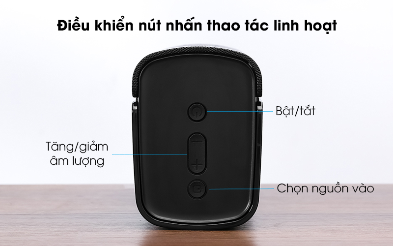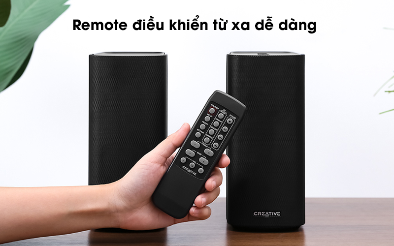 Với bảng điều khiển nút nhấn trên thân máy, bạn có thể chỉnh nhanh âm lượng, chọn nguồn vào, bật/tắt loa. Còn điều khiển từ xa thì cho phép tùy chỉnh loa chi tiết và tiện lợi hơn, khi bạn có thể đứng ở vị trí xa để thao tác với loa dễ dàng.