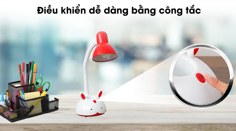 Thiết kế thân đèn dễ xoay chuyển, tùy chỉnh độ cao và góc chiếu sáng linh hoạt. Đồng thời thiết kế hộp đựng bút đa năng tiện lợi.