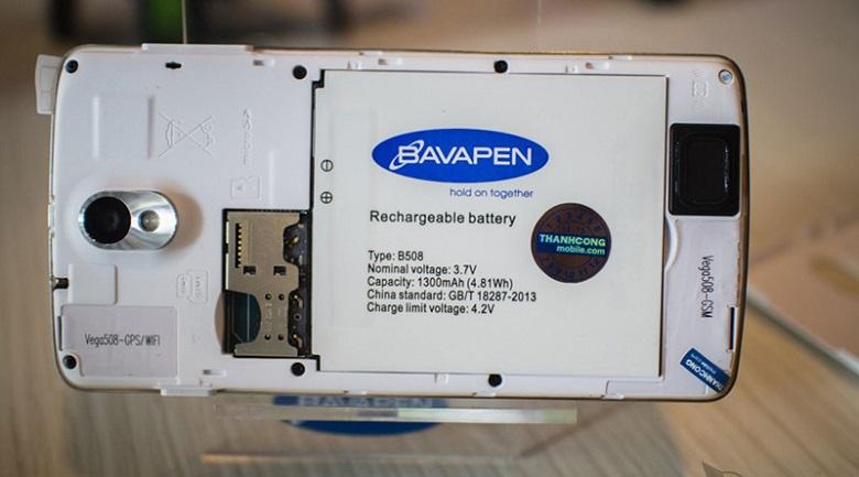Viên pin dung lượng 1300mAh không phải quá ấn tượng, nhưng với một thiết bị có màn hình không quá lớn và cấu hình vừa phải như Bavapen B508, nó có thể cho thời gian sử dụng liên tục khoảng gần 1 ngày. Tất nhiên, nếu người dùng thường xuyên truy cập mạng, chơi game hay xem video, thời lượng này sẽ bị sụt giảm nhanh hơn.
