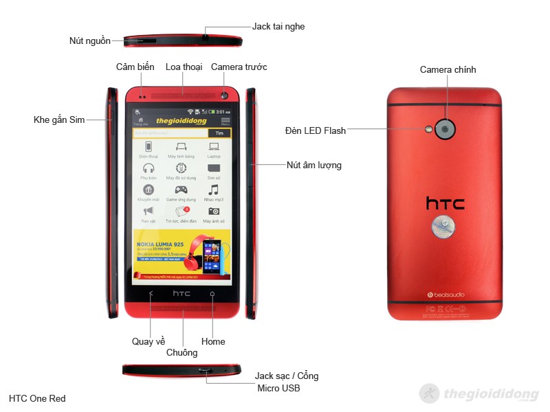 Điện thoại thông minh HTC One Red chính là một trong ba phiên bản bao gồm HTC One màu trắng, HTC One màu đen và HTC One đỏ (Red). Phiên bản màu đỏ được coi là quyến rũ nhất.