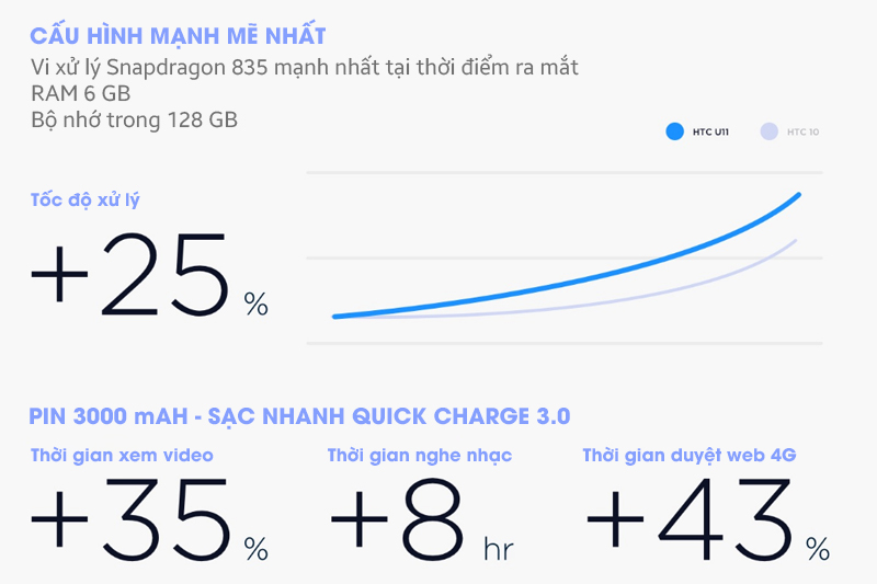 Mình vừa mới mua được smartphone HTC U11 này trong dịp Tết. Phải nói là máy xài mượt, chụp camera sau rất đẹp, chụp selfie thì hình chân thực quá chứ ko "làm đẹp" khuôn mặt bằng S7 edge mà mình đã từng xài... Tuy nhiên, đây cũng ko phải là điểm mình than phiền gì. Hơn nữa, máy duyệt wifi, 4g tốt. Xem video hình ảnh rất đẹp, ko thua gì iPhone và Samsung cao cấp! Đặc biệt là mình rất hài lòng với phần âm thanh của máy, vì loa ngoài phát rất to gần như phiêu đầy 1 căn phòng nhà mình, còn âm thanh tai nghe thì trong, rõ và âm bass lẫn treble đều tuyệt cả 👍 Thiết kế phần thân sau và mặt trước của máy đẹp và cân đối, lại còn được tặng kèm 1 ốp lưng bằng nhựa nữa chứ 👍 Hệ điều hành thì máy mình mới mua về ngày hôm sau là được update lên Android 8.0 luôn rồi, rất tuyệt 👍 Cùng với củ sạc nhanh trong vòng chưa đến 1 tiếng đã đầy rồi 👍 Nói chung đây là điện thoại smartphone đáng mua để sử dụng 👍