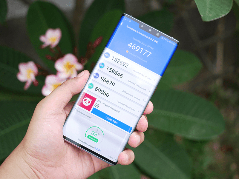 Điểm số Antutu Benmark chấm được trên Huawei Mate 30 Pro cao ấn tượng, với 469.177 điểm máy hoàn toàn có thể chiến tốt tựa game nặng hay kể cả các ứng dụng đồ họa thực tế ảo VR.