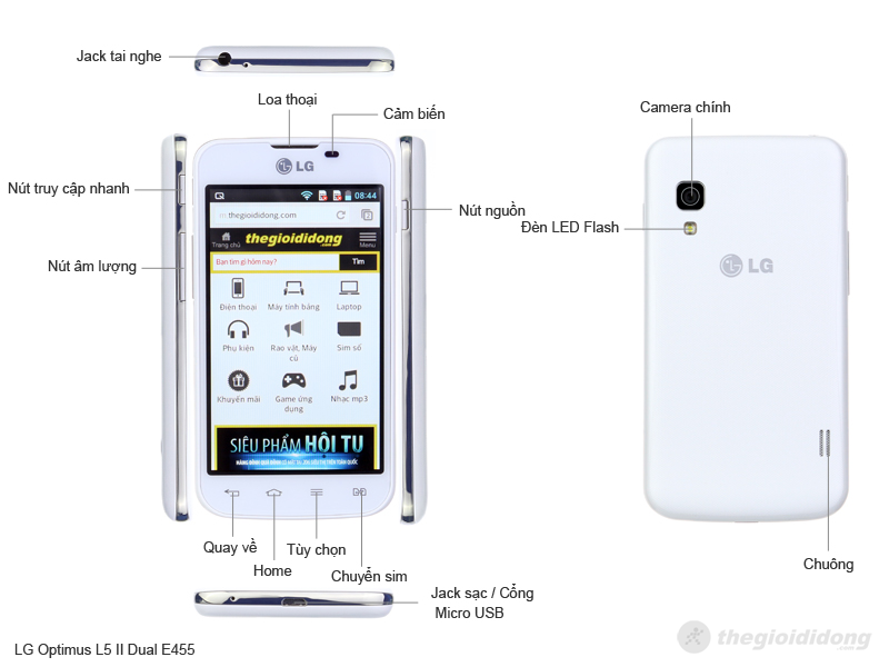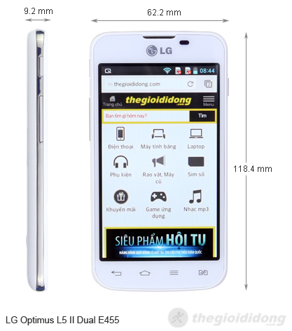LG Optimus L5 II Dual hỗ trợ 2 sim 2 sóng online