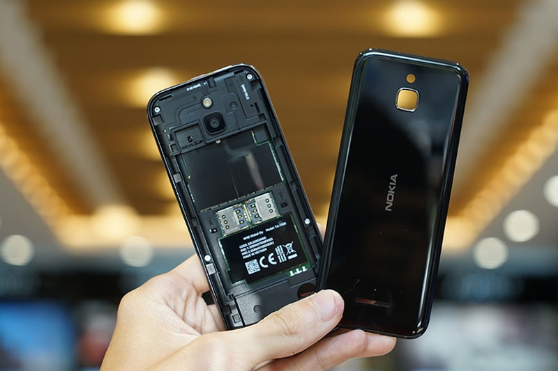 Máy có khung và mặt lưng được làm từ nhựa cao cấp cho hiệu ứng giống mặt kính lấp lánh, thay đổi màu sắc theo góc nhìn giúp Nokia 8000 4G có sự sáng tạo và cao cấp khi nhìn vào. Hạn chế được các vết trầy xước theo thời gian, hơi bám dấu vân tay.