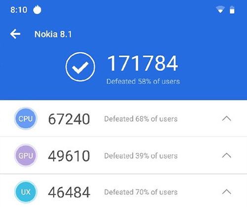 Cung cấp sức mạnh cho Nokia 8.1 là con chip Snapdragon 710, con chip tầm trung mạnh mẽ nhất hiện nay đi kèm 4 GB RAM cùng 64 GB bộ nhớ trong.