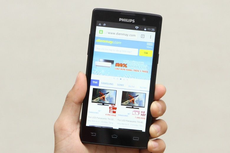 Viên pin 2200mAh kết hợp với công nghệ tiết kiệm pin độc quyền của nhà sản xuất Philips sẽ giúp máy duy trì thời lượng hoạt động được lâu hơn. Nhờ đó, người dùng có thể thoải mái lướt web, xem phim hay chơi game mà không phải bận tâm quá nhiều đến vấn đề nguồn điện sạc.