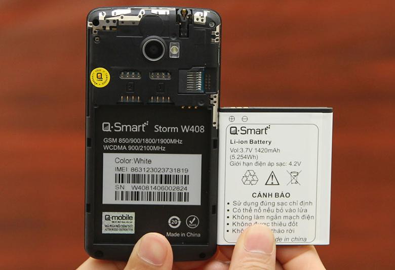 Dung lượng pin 1420mAh của Q-Smart Storm W408 không quá nổi bật nhưng cũng đủ cho những trải nghiệm thông thường trong 1 ngày của bạn. Để có được thời gian sử dụng lý tưởng nhất, bạn cần tắt ứng dụng chạy ngầm thường xuyên cũng như các kết nối không cần thiết.