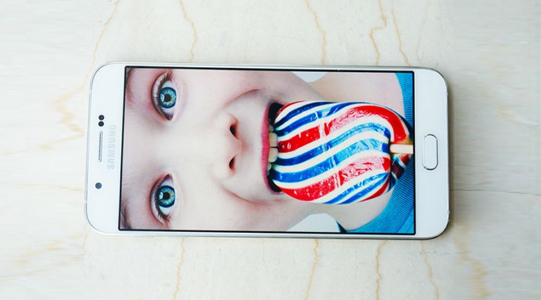Samsung Galaxy A8 sở hữu kích thước màn hình 5,7 inch, độ phân giải Full HD 1080x1920 pixels. Công nghệ Super AMOLED độc quyền của Samsung được làm mới giúp tái hiện hình ảnh một cách trung thực nhất, màu sắc rực rỡ dưới mọi góc nhìn nhưng vẫn giữ được độ chuẩn mực cùng độ sáng rất cao. Màn hình máy được bảo vệ bởi lớp kính cường lực Gorilla Glass 4 giúp gia tăng độ bền và hạn chế tối đa các vết trầy xước.