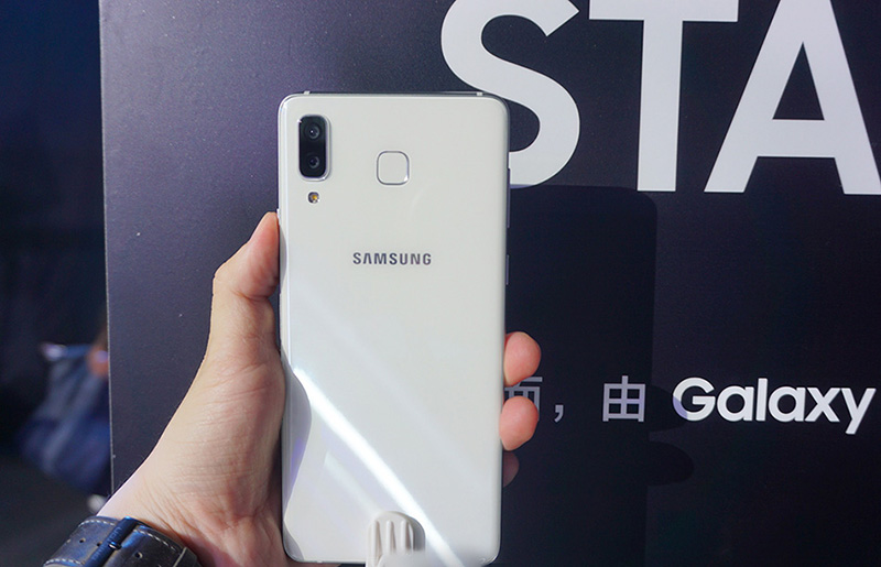 Bộ đôi camera kép 24 MP và 16 MP ở mặt lưng của Galaxy A8 Star được đặt dọc và nằm lệch về cạnh phải tương tự chiếc Apple iPhone X.