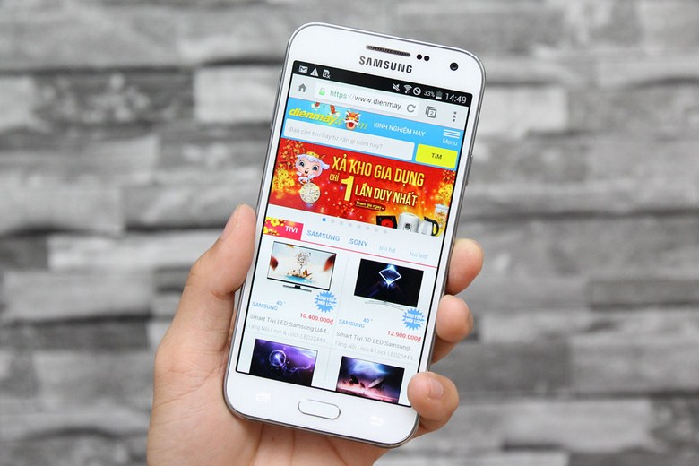 Samsung Galaxy E5 được trang bị vi xử lý 4 nhân xung nhịp 1.2GHz, cùng với dung lượng RAM 1.5GB. Cấu hình này có thể đảm bảo tốt cho máy trong việc thực thi các tác vụ công việc và giải trí. Bộ nhớ trong của máy có dung lượng 16GB và còn có thể được mở rộng nhờ sự hỗ trợ của thẻ nhớ micro SD.