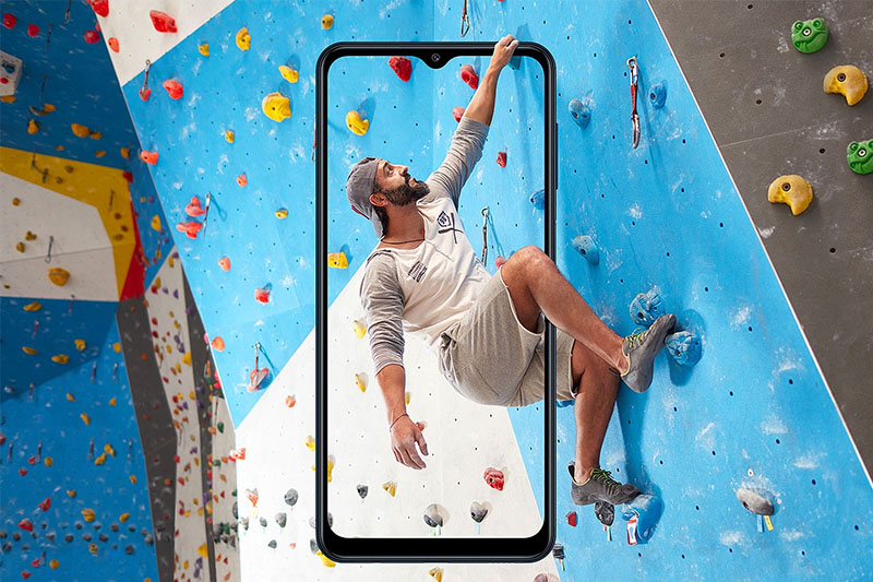 Galaxy M12 sở hữu màn hình tràn viền giọt nước Infinity-V 6.5 inch với phần rãnh giọt nước đặt camera selfie, cạnh viền 2 bên được làm mỏng tối đa, tỷ lệ 20:9 mang đến hiệu ứng hình ảnh được hiển thị rộng hơn để bạn thưởng thức nội dung yêu thích một cách tối ưu nhất.