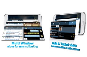 Bằng cách kết hợp thông minh giữa giao diện trên điện thoại và máy tính bảng với những tính năng như Multi Windows (làm việc với nhiều cửa sổ), Split & Tablet view (Phân chia và xem màn hình theo dạng máy tính bảng), Samsung Galaxy Mega 5.8 Duos giúp người dùng làm chủ được màn hình lớn xử lý nhiều tác vụ cùng một lúc, vừa giải trí vừa làm việc dễ dàng hơn.