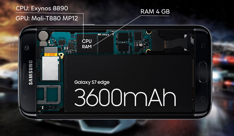 Thuộc phân khúc cao cấp nhất trong dòng điện thoại Samsung Galaxy, Samsung S7 Edge Black Pearl được trang bị vi xử lý mạnh mẽ nhất Exynos 8890, có hiệu năng vi xử lý mạnh hơn 30% và hiệu năng đồ họa hơn đến 60% so với thế hệ trước. Mọi hoạt động ứng dụng trên thiết bị đều hoạt động một cách hòa hảo nhất, chơi được hầu hết game "nặng" ở thời điểm hiện tại và dung lượng RAM lên đến 4 GB không bao giờ lo thiếu bộ nhớ.