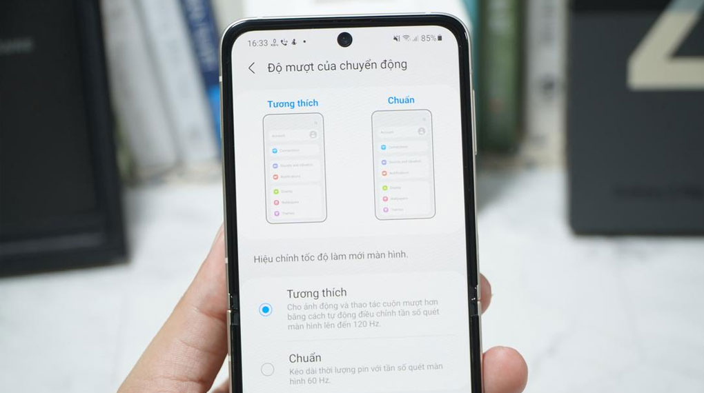 Không nằm ngoài cuộc đua về tần số quét trên di động, Samsung đã trang bị cho máy tần số quét 120 Hz trên mặt kính cảm ứng Ultra Thin Glass (UTG). Giúp cho màn hình có chất lượng hiển thị vượt trội, cảm giác vuốt chạm cho chuyển động mượt mà và nhanh hơn.