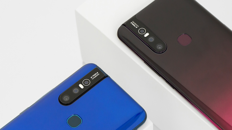 Để đạt được kiểu thiết kế màn hình "siêu tràn viền", Vivo V15 64GB đã đưa camera selfie "ẩn" đi, trở về dạng trượt pop-up, khi cần sẽ xuất hiện.