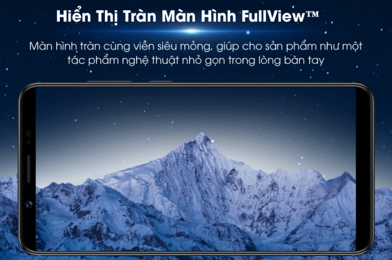 Xu hướng màn hình tràn viền siêu đẹp cũng xuất hiện trên dòng máy tầm trung Vivo V7 Plus. Với cái tên FullView bạn sẽ thấy mặt trước máy dường như bao phủ hầu hết là phần màn hình hiển thị. Kích thước màn hình lên đến 5.99 inch cho trải nghiệm dùng tuyệt vời, độ phân giải HD+.