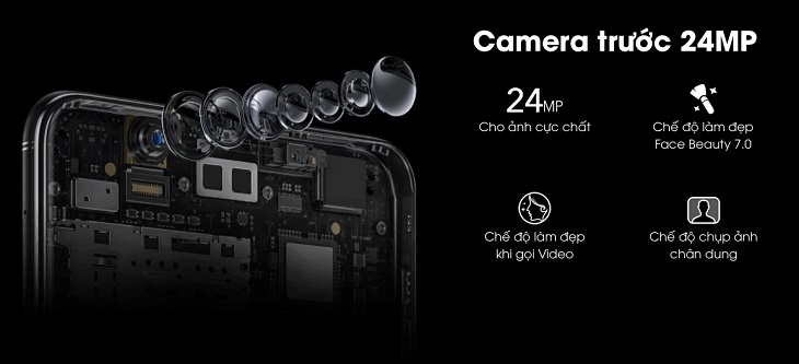Vivo V7 Plus là chiếc điện thoại có camera selfie lớn nhất ở thời điểm hiện tại với 24 MP giúp ảnh chụp sắc nét và chi tiết không ngờ. Chế độ làm đẹp khuôn mặt Face Beauty 7.0 cực ảo diệu, chụp chân dung xóa phông và làm đẹp khi quay video cũng được tích hợp.