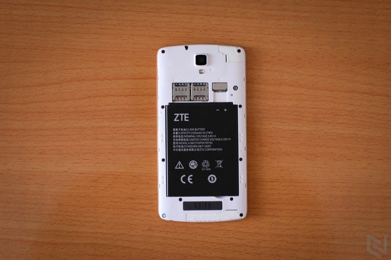 Tuy nắm lưng được thiết kế dạng vân lưới, cho cảm giác cầm nắm tốt, không bám mồ hôi và dấu vân tay. Logo của ZTE được in mờ phía dưới cụm camera, dưới cùng là dải loa ngoài.