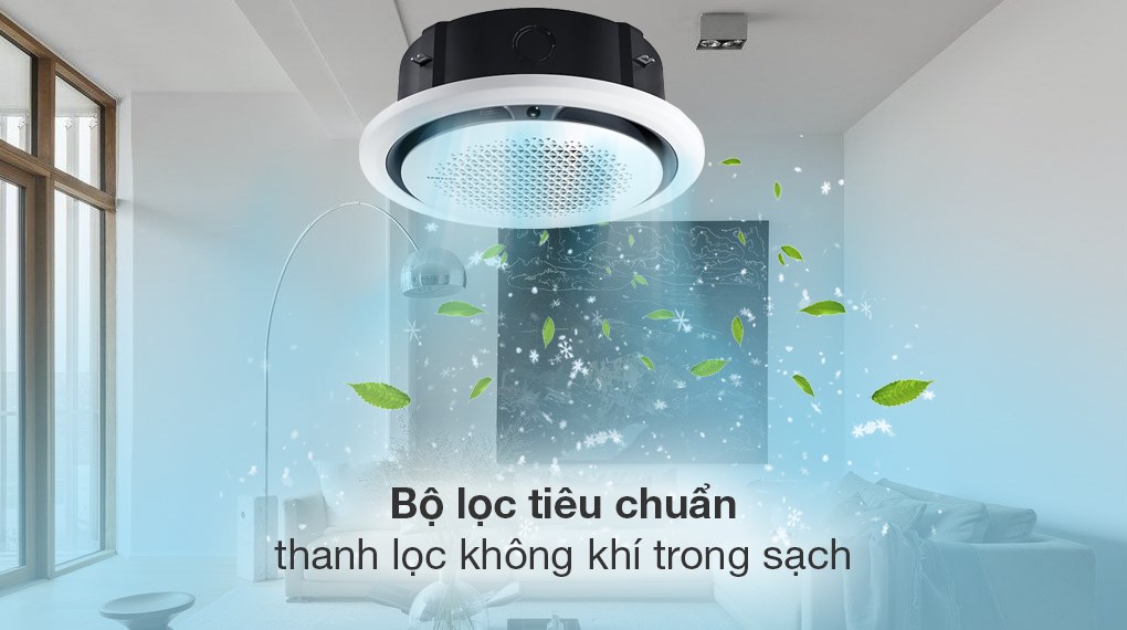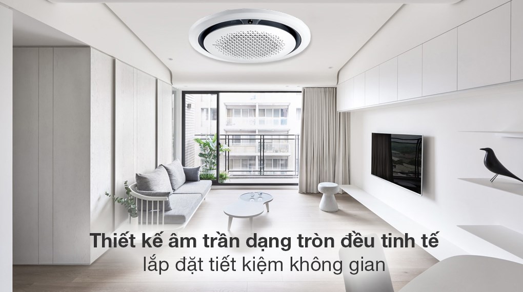 - Thuộc dòng máy lạnh âm trần có tạo hình tròn đều đầy sáng tạo, thiết kế đương đại, hợp xu hướng này dung nhập hài hòa vào thiết kế nội thất sang trọng, hiện đại của căn phòng khách, phòng ngủ, phòng họp của bạn.