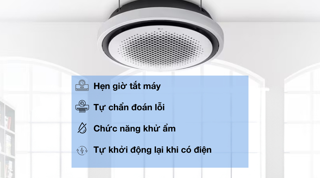 - Máy lạnh âm trần LG ZTNQ36GYLA0 có thiết kế dàn lạnh hình tròn độc đáo, dễ dàng hài hòa với nhiều phong cách nội thất và mang lại điểm nhấn hiện đại cho không gian lắp đặt.