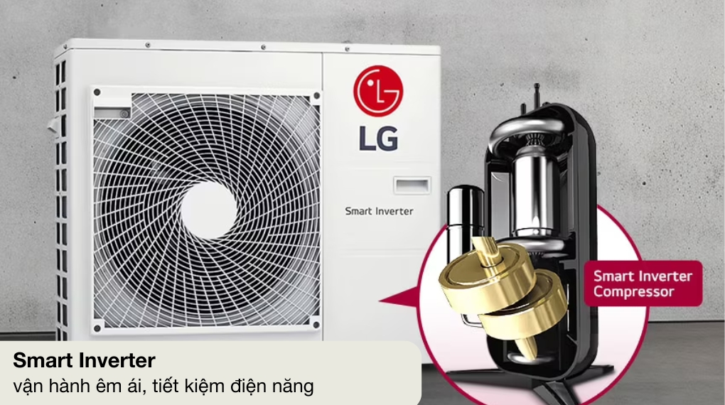 - Ứng dụng công nghệ Smart Inverter, máy lạnh LG có thể điều chỉnh công suất hoạt động để duy trì độ mát ổn định và tiết kiệm điện năng đáng kể. Ngoài ra, công nghệ này còn giúp máy vận hành êm ái, giảm tiếng ồn, phù hợp cho không gian làm việc hoặc sinh hoạt.