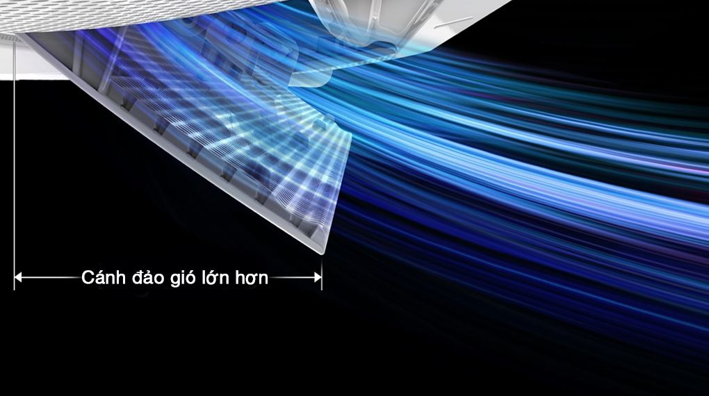 - Bên cạnh đó, bộ phận cánh đảo gió được thiết kế lớn hơn, từ đó hỗ trợ đưa luồng gió lạnh đi xa, giúp căn phòng được làm lạnh hiệu quả.