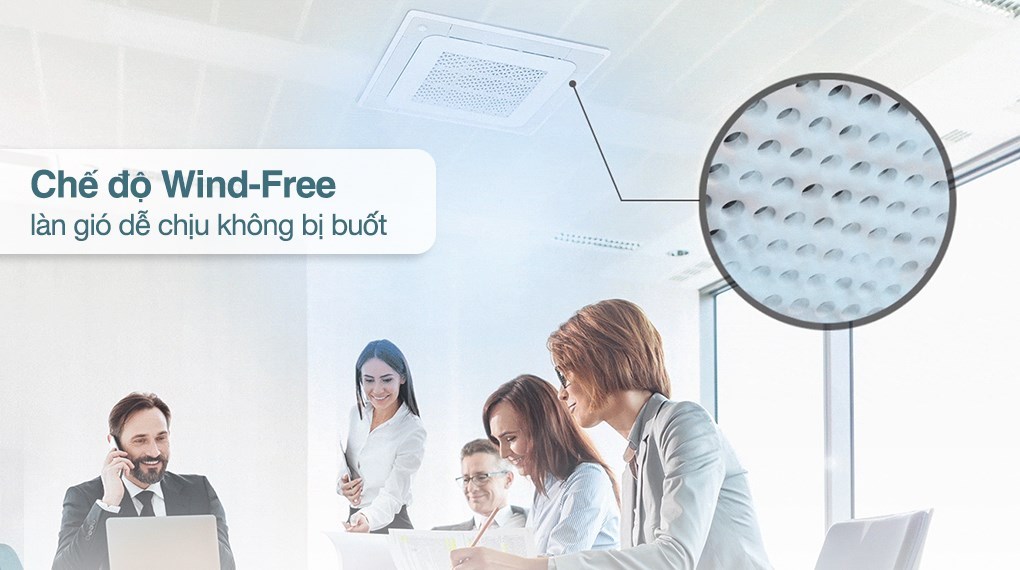 - Công nghệ Wind-Free hoạt động bằng cách hơi lạnh sẽ thổi thông qua các lỗ nhỏ li ti trên nắp cánh đảo gió nhờ đó hơi lạnh được thổi ra nhẹ nhàng, không buốt giá phù hợp với gia đình có người già và trẻ nhỏ.