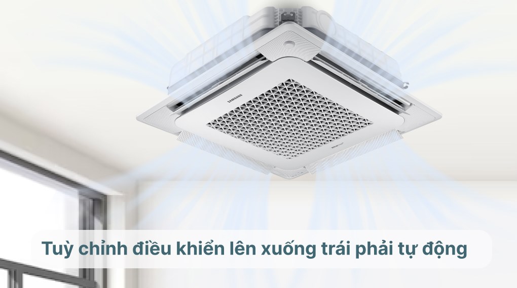 Thiết kế với 4 họng gió và có cơ chế thổi gió tuỳ chỉnh điều khiển lên xuống trái phải tự động nên hơi lạnh được lan tỏa nhanh chóng và đồng đều khắp không gian, mang đến không gian dễ chịu.