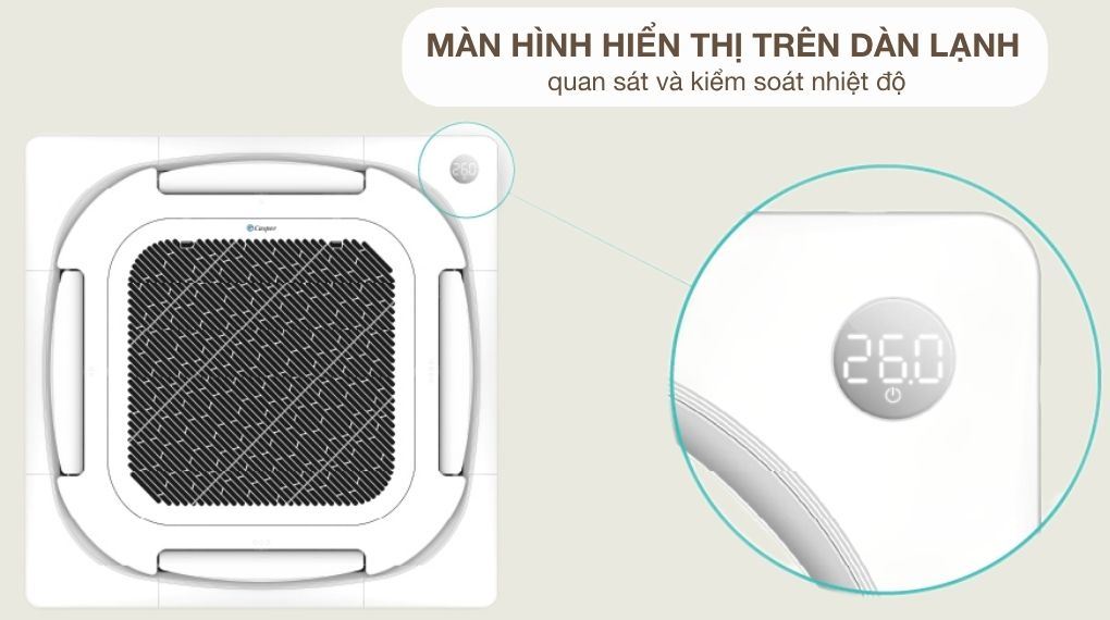 Điều hòa âm trần Casper được tích hợp nhiều tiện ích hỗ trợ người dùng như khả năng tự khởi động lại khi có điện, duy trì hoạt động ổn định mà không cần cài đặt lại. Hệ thống lọc không khí cơ bản loại bỏ bụi bẩn trong không khí, góp phần mang lại môi trường trong lành hơn cho không gian sử dụng. Bên cạnh đó, sản phẩm còn được trang bị chức năng tự làm sạch dàn lạnh nhằm hạn chế vi khuẩn tích tụ bên trong, từ đó duy trì luồng khí sạch và tăng độ bền cho thiết bị.