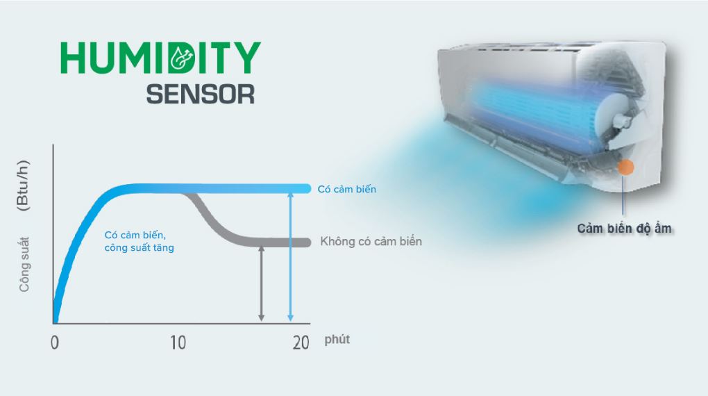 Cảm biến ẩm Humidity Sensor: Tăng cường khả năng khử ẩm, duy trì công suất lạnh lâu và mang lại sự thoải mái liên tục.