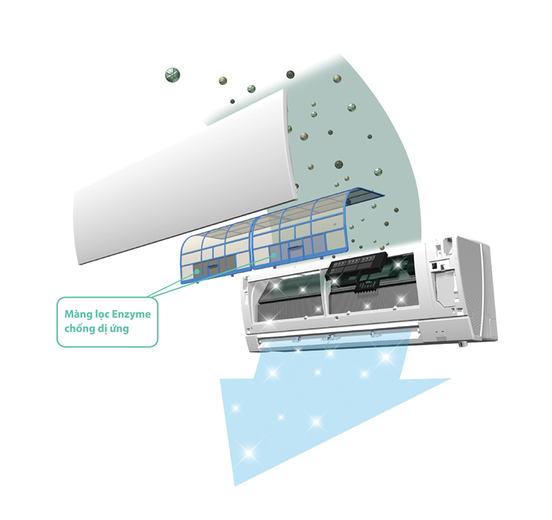 Công nghệ màng lọc Enzyme không những lọc được bụi mà còn lọc được các tác nhân gây dị ứng, sau đó phân hủy chúng để đảm bảo không khí trong lành tự nhiên, an toàn cho người dùng đặc biệt là trẻ em.