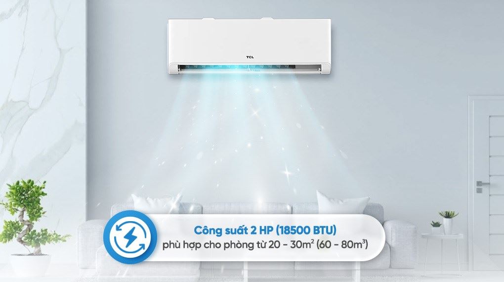 Với công suất làm lạnh lên đến 2 HP (tương đương 18500 BTU), chiếc máy lạnh này là sự lựa chọn lý tưởng cho các không gian có diện tích trung bình lớn như phòng khách, phòng họp nhỏ hoặc căn hộ studio có diện tích từ 20 đến 30m² (từ 60 đến 80m³).
