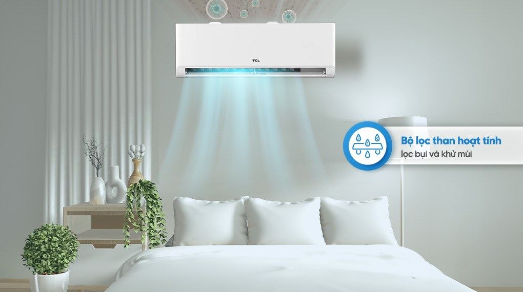 Về khả năng làm sạch không khí, máy được trang bị bộ lọc than hoạt tính có đặc tính hấp thụ, giúp giảm thiểu các mùi hôi phổ biến trong sinh hoạt như mùi thức ăn hay khói thuốc. Hệ thống này hoạt động cùng lưới lọc mật độ cao để hỗ trợ giữ lại các hạt bụi bẩn và tác nhân gây dị ứng, góp phần cải thiện chất lượng không khí trong phòng.