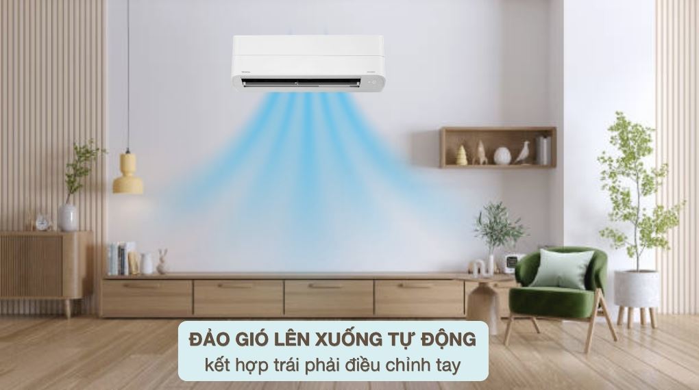 Máy được trang bị khả năng đảo gió lên xuống tự động, kết hợp điều chỉnh trái phải bằng tay, đưa luồng không khí được phân bổ đều hơn trong không gian. Nhờ đó, máy hạn chế tình trạng thổi trực tiếp vào người gây khó chịu, đồng thời mang lại cảm giác dễ chịu khi sử dụng trong thời gian dài.