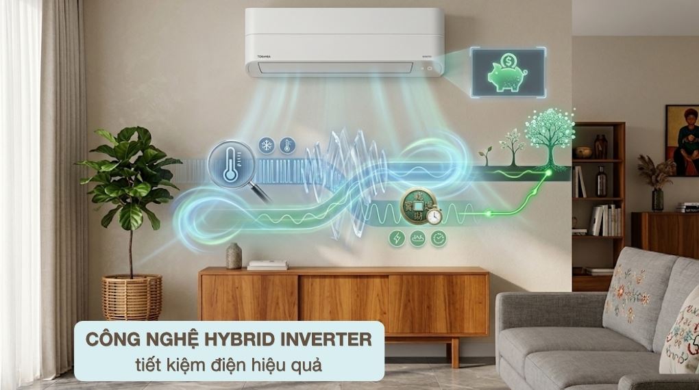 Máy lạnh sử dụng công nghệ Hybrid Inverter điều chỉnh công suất linh hoạt, duy trì nhiệt độ ổn định và giảm hao phí năng lượng. Kết hợp với chế độ Eco, máy tối ưu hiệu quả sử dụng điện trong những điều kiện không cần làm lạnh quá mạnh, góp phần nâng cao hiệu quả vận hành và độ bền thiết bị.