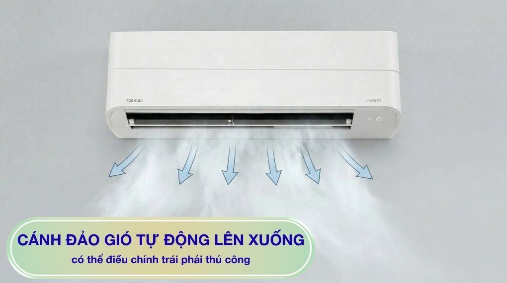 - Máy lạnh này sử dụng cơ chế thổi gió với cánh đảo tự động theo chiều lên xuống giúp phân bổ luồng khí đều khắp không gian, đồng thời cho phép chỉnh tay trái phải để tập trung hơi lạnh vào khu vực cần thiết.