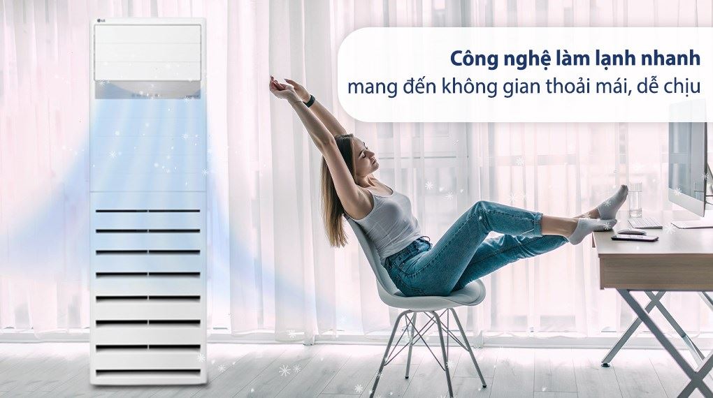 - Máy lạnh tủ đứng LG này sở hữu công suất 3 HP, phù hợp diện tích căn phòng lớn từ 35 - 40m² như khu vực sảnh nhà hàng, triển lãm, xưởng xí nghiệp,…