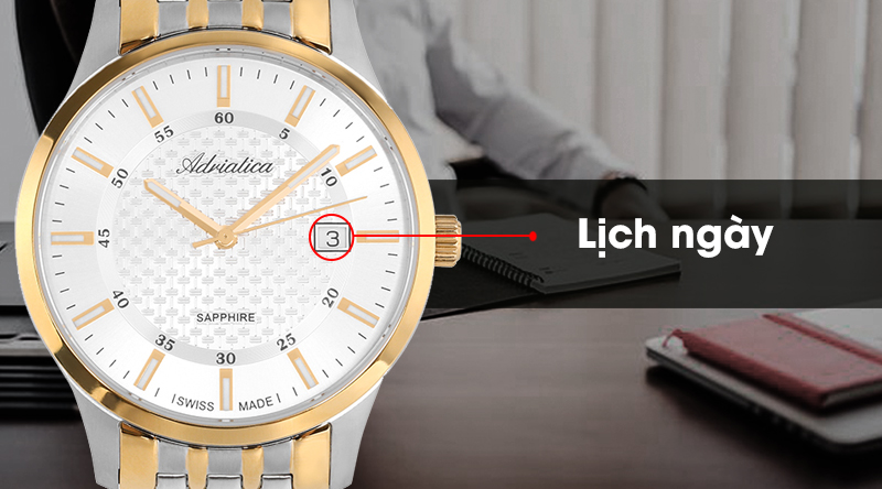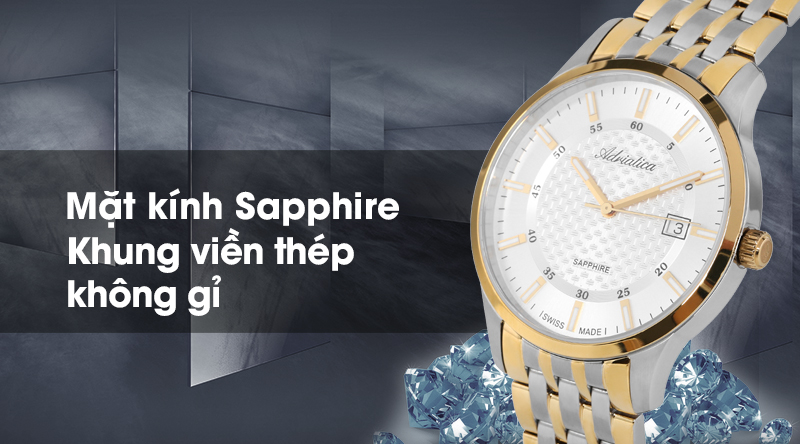 - Khung viền mẩu đồng hồ Adriatica nam này bền bỉ, chống ăn mòn, chống oxi hóa, hạn chế hư hỏng cho đồng hồ khi va chạm.