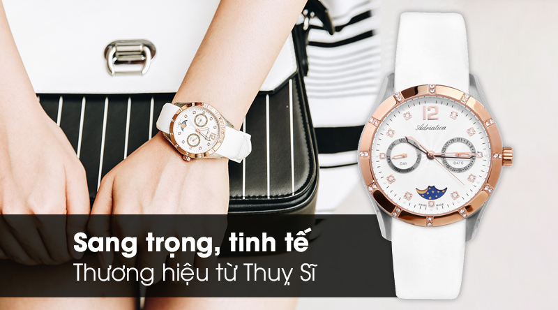Đồng hồ nữ Adriatica A3698.R273QFZ là chiếc đồng hồ kim mang thương hiệu đồng hồ Adriatica đến từ Thụy Sĩ.