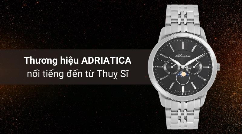 - Adriatica là thương hiệu chuyên về đồng hồ bằng vàng, mạ vàng, mạ PVD, titan và thép. Adriatica cung cấp nhiều mẫu đồng hồ, từ đồng hồ công sở cho đến đồng hồ bấm giờ.