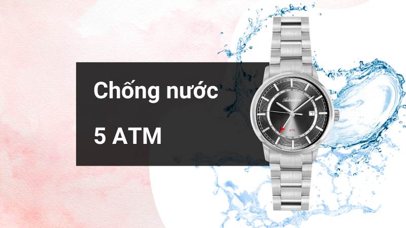 - Hệ số chống nước của đồng hồ nam là 5 ATM, thoải mái sử dụng khi tắm, đi mưa, rửa tay. Tuy nhiên, nên để nơi khô ráo khi bơi lội hay lặn