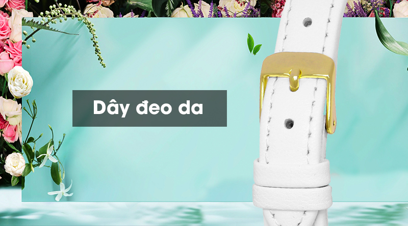 Dây đeo của chiếc đồng hồ nữ êm ái, nhẹ nhàng, ôm trọn cổ tay tạo cảm giác thoải mái, độ bền cao.