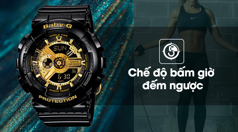 Đồng hồ nữ Baby-G BA-110-1ADR hỗ trợ thêm tính năng bấm giờ đếm ngược
